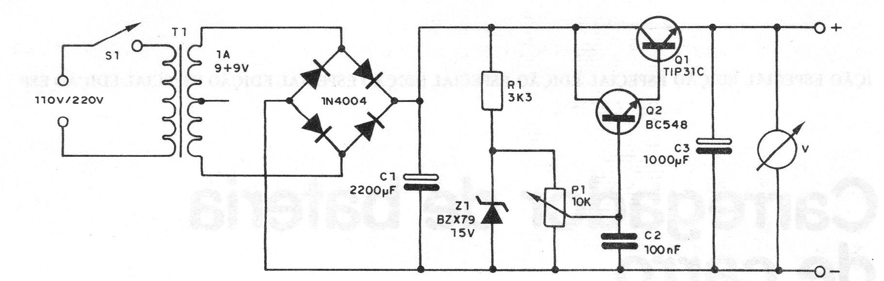 Esta fuente puede proporcionar tensiones ajustables entre 0 y 15 V con corrientes de carga de hasta 1 A. Se trata de una fuente ideal para la bancada del montador, reparador y estudiante.
