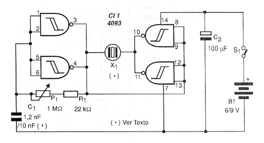 Los sonidos y los ultrasonidos pueden ser generados con el circuito mostrado en la figura 1.