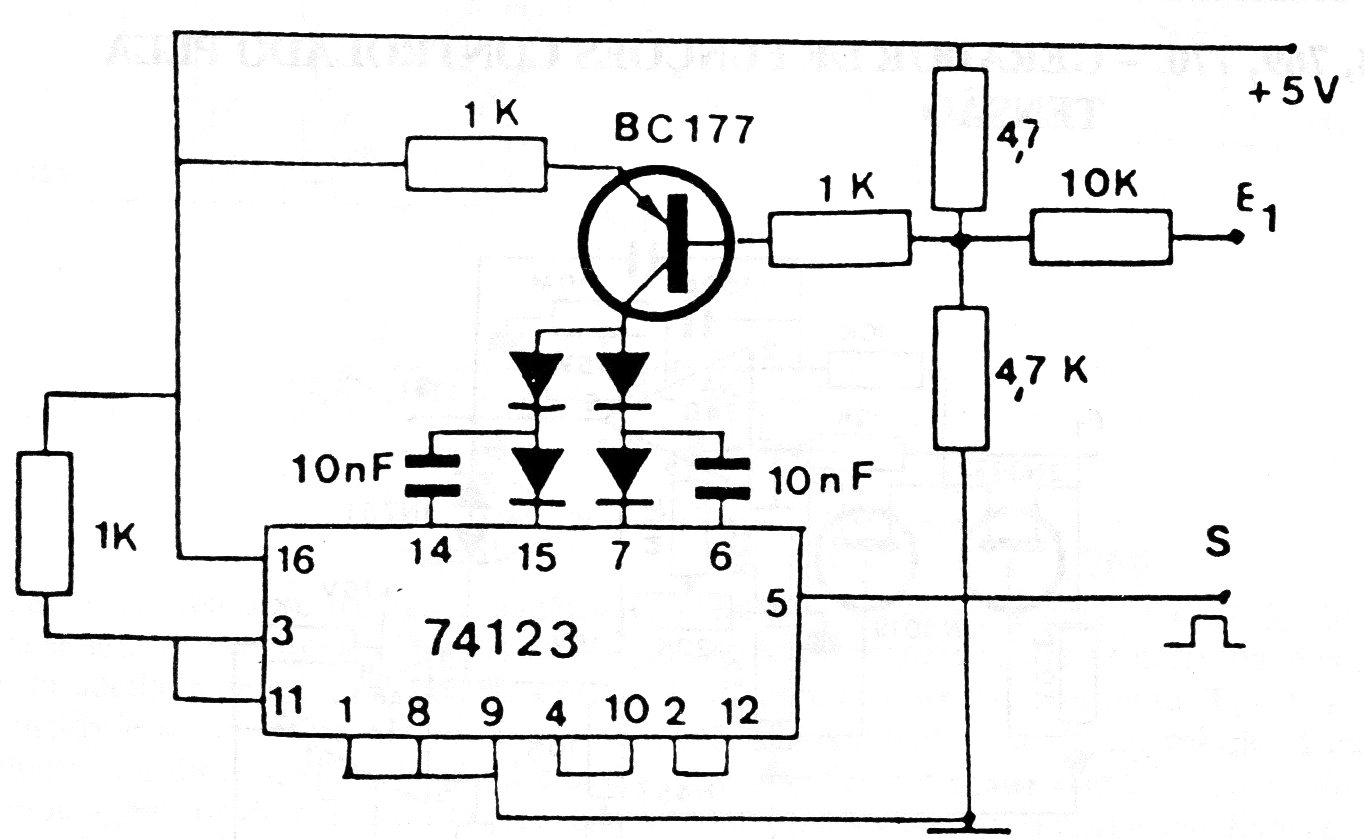 Este circuito puede ser utilizado como shield para sensores o circuitos analógicos acoplados a la entrada digital de microcontroladores. Se trata básicamente de un convertidor de tensión-frecuencia TTL. La alimentación debe ser de 5 V y el transistor puede ser el BC557. El rango de frecuencias depende de los condensadores. La tensión de entrada debe estar entre 0 y 6 V.