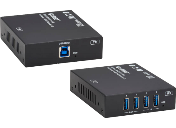 El kit extensor BHDBT3-USB HDBaseT-USB3 sobre Cat6A de Tripp Lite extiende datos desde periféricos USB, como cámaras web y dispositivos de almacenamiento de datos, hasta 100 m a través de un cable Cat6A. El kit de extensión BHDBT3-USB de Tripp Lite utiliza un chipset Valens para proporcionar una solución moderna para la extensión USB. El kit extensor admite velocidades de transferencia de datos USB 3.2 Gen 1 de hasta 5 Gbps y es compatible con versiones USB anteriores. La tecnología Power over Cable (PoC) integrada proporciona energía para evitar voluminosos bloques de alimentación externos.