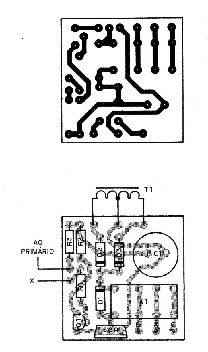 T1 - transformador con primario de acuerdo con la red local y secundaria de 12 V x 250 mA o más