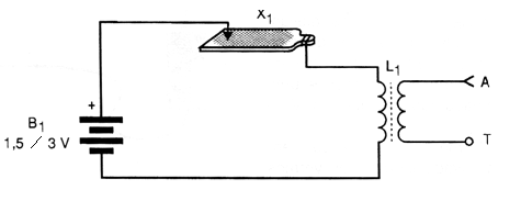 Podemos producir tales "vibraciones" de una manera muy simple frotando un hilo conectado a una pila, en un archivo común. Como "carga" inductiva para reforzar las oscilaciones, es decir, producir las señales deseadas tenemos una bobina enrollada en un bastón de ferrita.