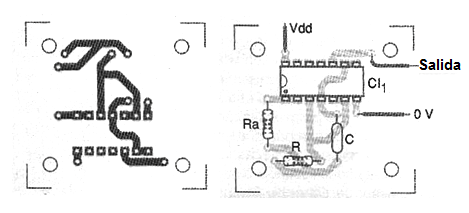 En la figura 2 tenemos una sugerencia de placa de circuito impreso para la implementación de este oscilador.