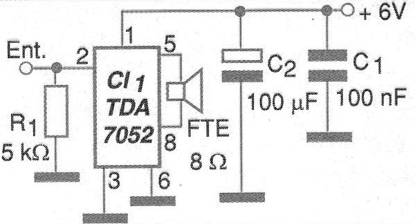 En la figura 1 tenemos el circuito completo de ese amplificador que puede funcionar con tensiones de 3 a 18 V.