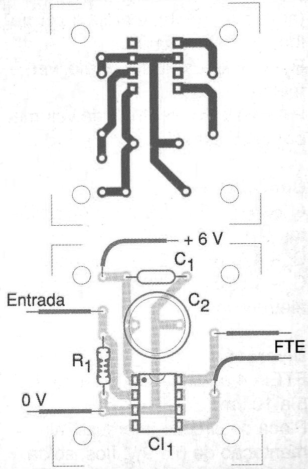 En la figura 2 damos una sugerencia de placa de circuito impreso para ese amplificador.