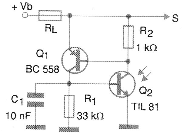 Cuando la luz incide en Q2, este transistor conduce, polarizando Q1 en el sentido de también hacerlo conducir. Con eso Q1 realimenta Q2 y tenemos un proceso muy rápido de disparo para el circuito que va a la plena conducción. Podemos decir que ese circuito es equivalente al de un SCR disparado por la luz.
