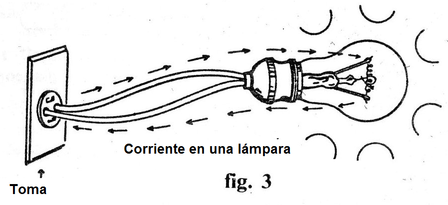 Véase también que es incorrecto hablar que en una toma existe "corriente". Una corriente sólo existe cuando hay un movimiento de electricidad o de cargas lo que sólo ocurre cuando conectamos algo a esta toma. En una toma desconectada no existe, por lo tanto, corriente sino tensión que explicaremos a continuación.