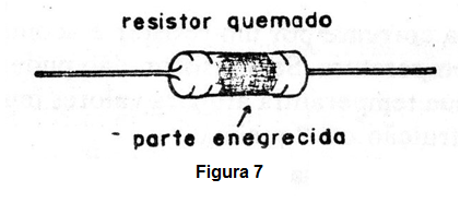 Los resistores, en estas condiciones, se pueden identificar fácilmente en uno. circuito en vista de su aspecto ennegrecido (figura 7).