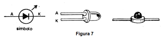 Los LEDs o diodos emisores de luz son diodos que al ser recorridos por una corriente eléctrica producen luz. Por lo tanto, son verdaderas lámparas semiconductor cuyo aspecto y símbolo se muestran en la figura 7.
