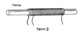 Una bobina es la de antena, enrollada en un bastón de ferrita, como muestra la figura 2, las otras dos son la osciladora de núcleo rojo para la banda de ondas medias y la primera FI de núcleo amarillo, como ya vimos.