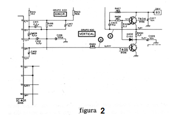 En la figura 2 tenemos el circuito del televisor tomado como base, mostrando sólo la etapa sospechosa.