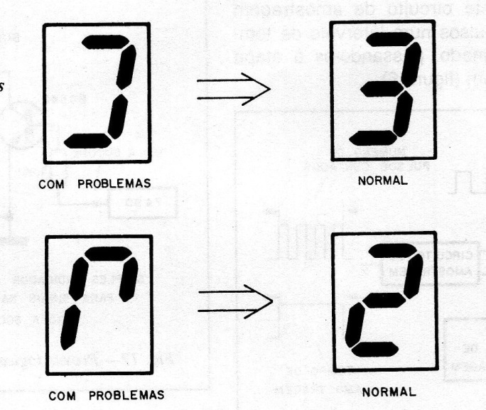 1) Algunos segmentos de los displays no se encienden, o aparecen números "inexistentes" con el accionamiento de segmentos en formas extrañas (figura 9).