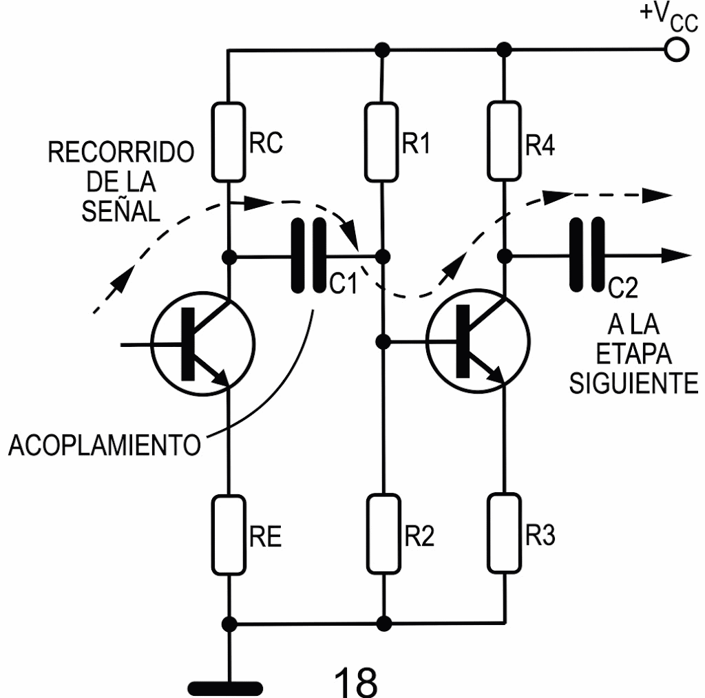 Normalmente, como tenemos un acoplamiento RC del tipo mostrado en la figura 12, el C1 short es equivalente a la conexión del resistor del colector RC de la etapa anterior en paralelo con R1.