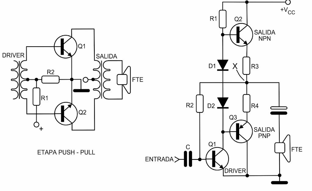 La salida Push-pull y ahora se limita a radios y grabadoras transistorizadas, cuya potencia no supera 1 W.