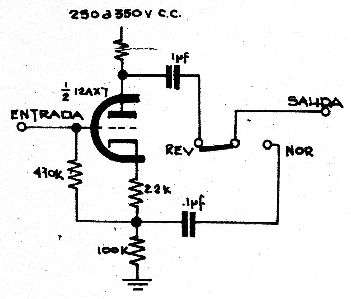 Este circuito se utiliza en amplificadores en push-pull valvulados sin transformador controlador para invertir la fase de la señal y excitar la válvula de salida. He encontrado este circuito en un viejo manual de circuitos valvulados. Otros triodos pueden ser utilizados y la alimentación viene del propio circuito con el que debe funcionar, ya que su consumo es muy bajo.