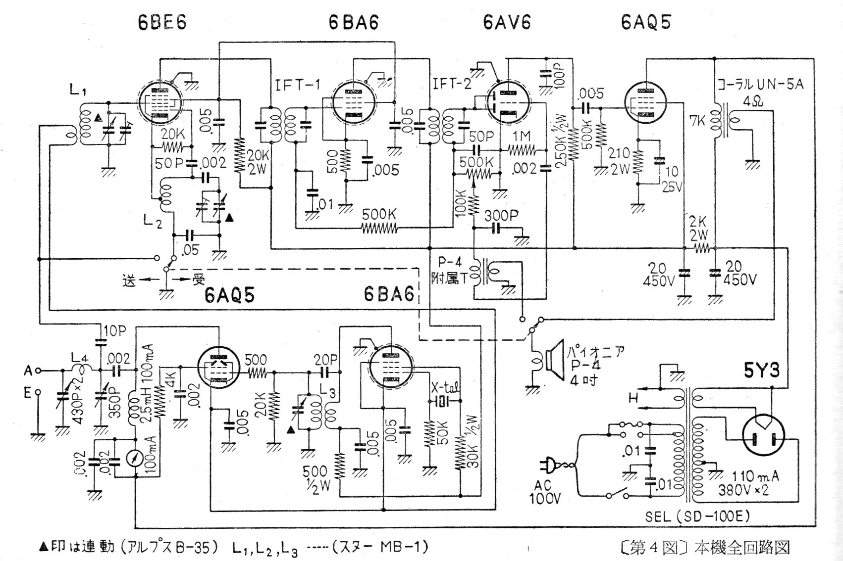 Este circuito de buena potencia fue obtenido en una antigua documentación japonesa, pero tiene una configuración universal para la época. El circuito utiliza un pentodo 6AQ5 en la salida y los componentes críticos son los transformadores.