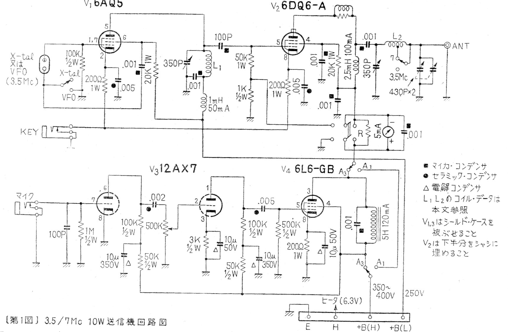 Este transmisor valvular para la banda de radioaficionados de 3,5 y 7 MHz se encontró en una antigua documentación del tiempo de las válvulas. El circuito tiene buena potencia posibilitando la realización de contactos muy distantes con el uso de antena apropiada.