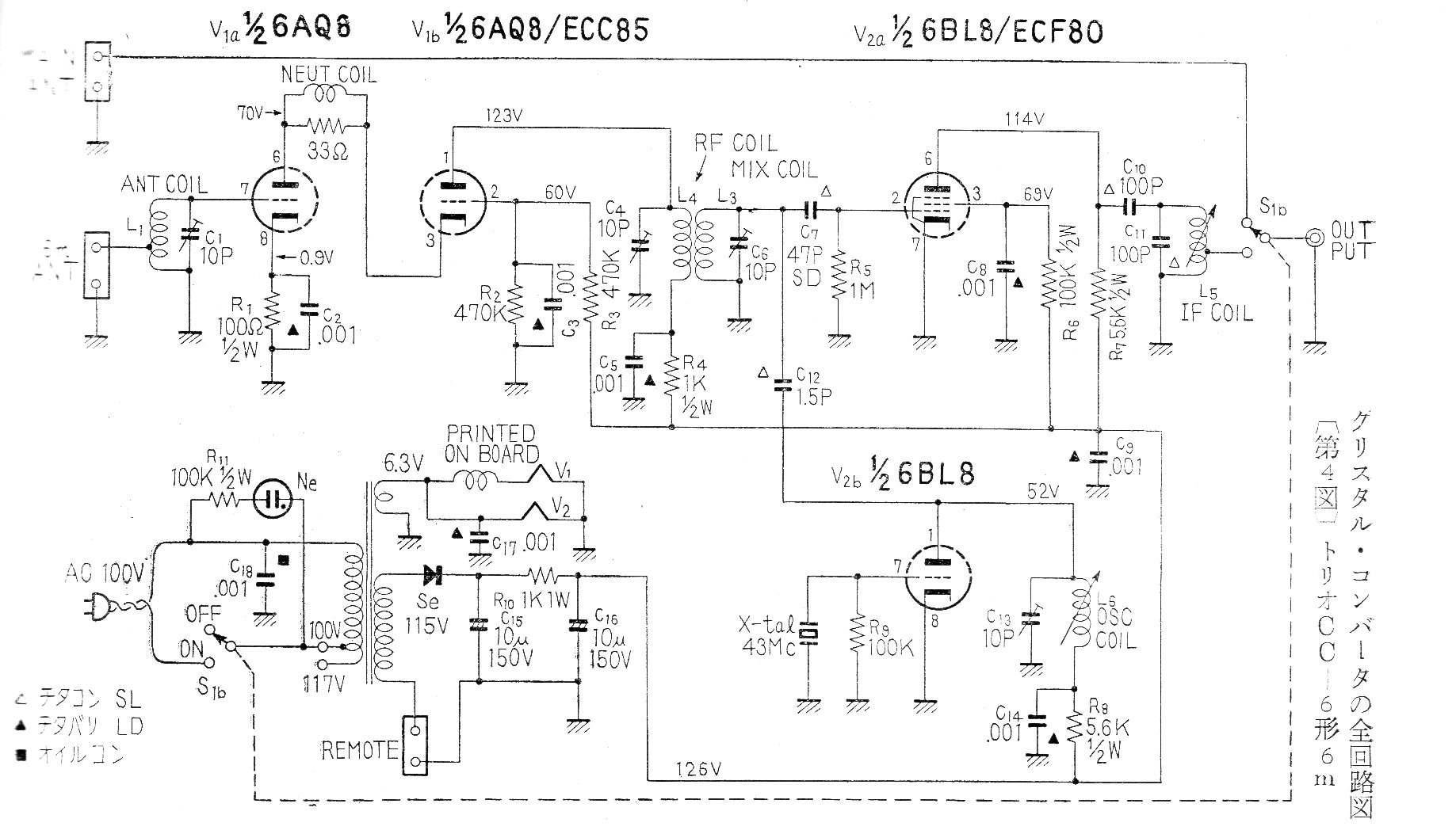 Este transmisor para el rango de 50 MHz se encontró en una documentación japonesa de los años 60. Los detalles de las bobinas no se dan y los componentes principales no son fáciles de obtener actualmente, como las válvulas y el transformador.