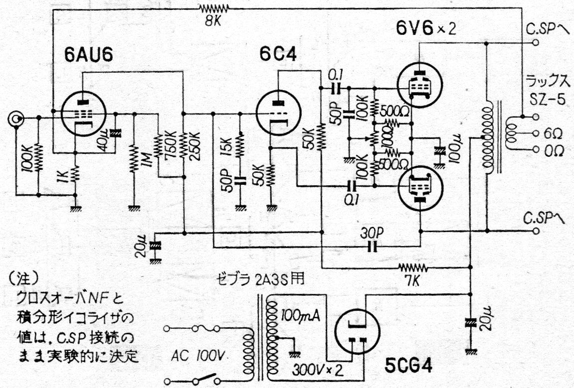 Este amplificador de buena potencia fue encontrado en una publicación japonesa de 1962. Los componentes ya no son comunes en nuestros tiempos, pero las válvulas aún pueden ser obtenidas en proveedores especializados.