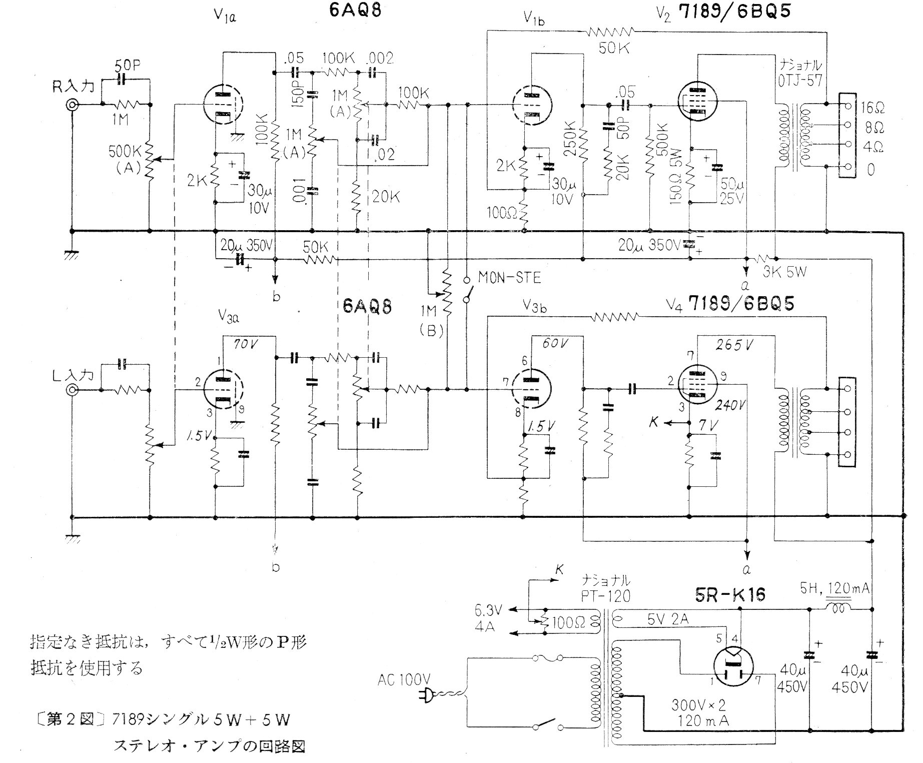 Este amplificador de buena calidad de sonido fue encontrado en una documentación japonesa de los años 60. Los componentes críticos son las válvulas y la resistencia de entrada es de 300 k ohms.