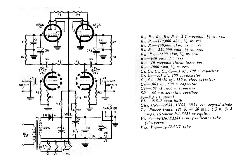 Este circuito de una revista de 1961 genera una señal doble de audio a través de dos multivibradores, cuya finalidad es facilitar la prueba de equipos de audio. El circuito hace uso de válvulas dobles y los componentes críticos son las válvulas y el transformador.