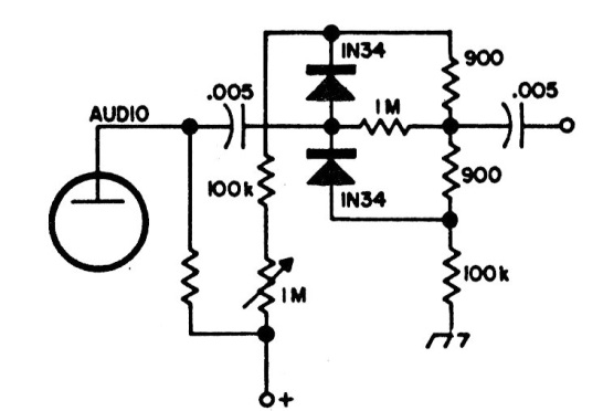 Esta configuración muestra cómo adaptar un paso de limitación de ruido con diodos en un circuito de válvula. El circuito es de una documentación antigua para aficionados. Sin embargo, el circuito se puede adaptar en los circuitos de audio generalmente eliminando el ruido de fondo.
