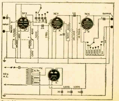 Este generador de onda cuadrada de válvula se encontró en un Radio Craft de septiembre de 1943. Las señales no superan unos pocos cientos de kilohertz con una selección realizada en un interruptor giratorio. El circuito de 5 válvulas, una de las cuales es un triodo doble, no es más que un multivibrador.