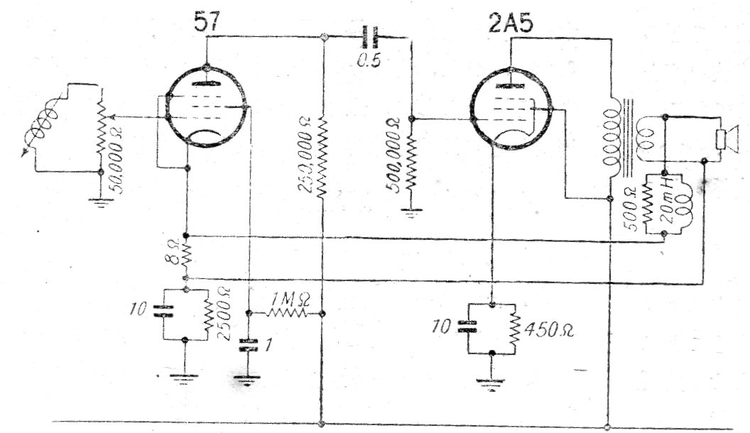 Este amplificador para fonocaptor magnético fue encontrado en una publicación japonesa de la década de 40. El circuito utiliza válvulas de la época, poco comunes actualmente. La potencia es baja, del orden de 1 o 2 watts y el transformador de salida es otro elemento crítico del circuito.