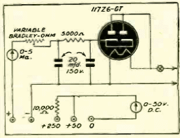 Este circuito opera con altas tensiones en la medida de resistencias, siendo solo indicado para componentes de la época. El circuito es de una documentación de 1944. Tenga en cuenta que no tiene aislamiento de red.