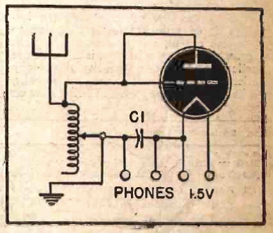 Si puede obtener una válvula de filamento de 1.5V de la década de 1940, aquí está la posibilidad de hacer un receptor muy simple para escuchar con auriculares. La bobina depende de la banda de ondas y el condensador suele ser de 10 nF. Los auriculares son de alta impedancia.