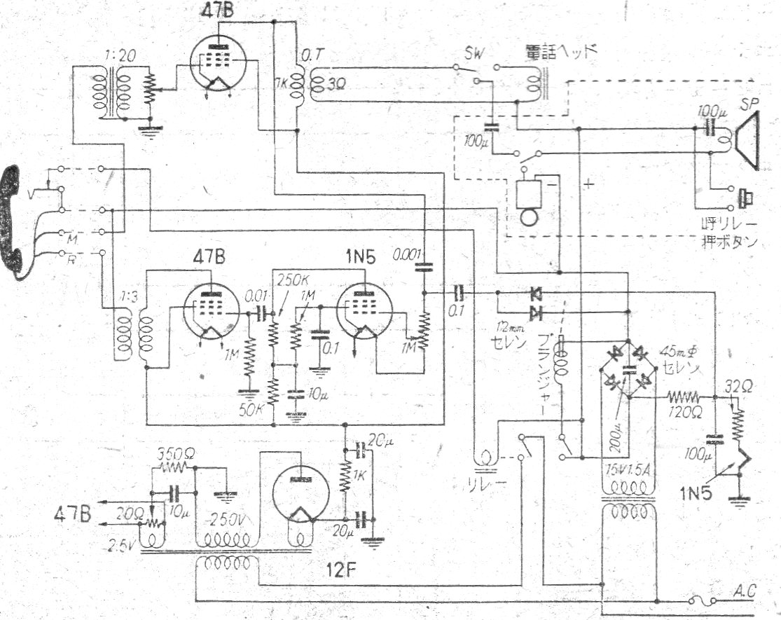 Este circuito muestra que la idea de la atención telefónica automática es muy antigua, con circuitos prácticos ya en los años 50. Este es el circuito de una de esas secretarias obtenido en una documentación japonesa de esa época. Observe que la atención tenía una parte mecánica que levantaba el auricular del gancho.
