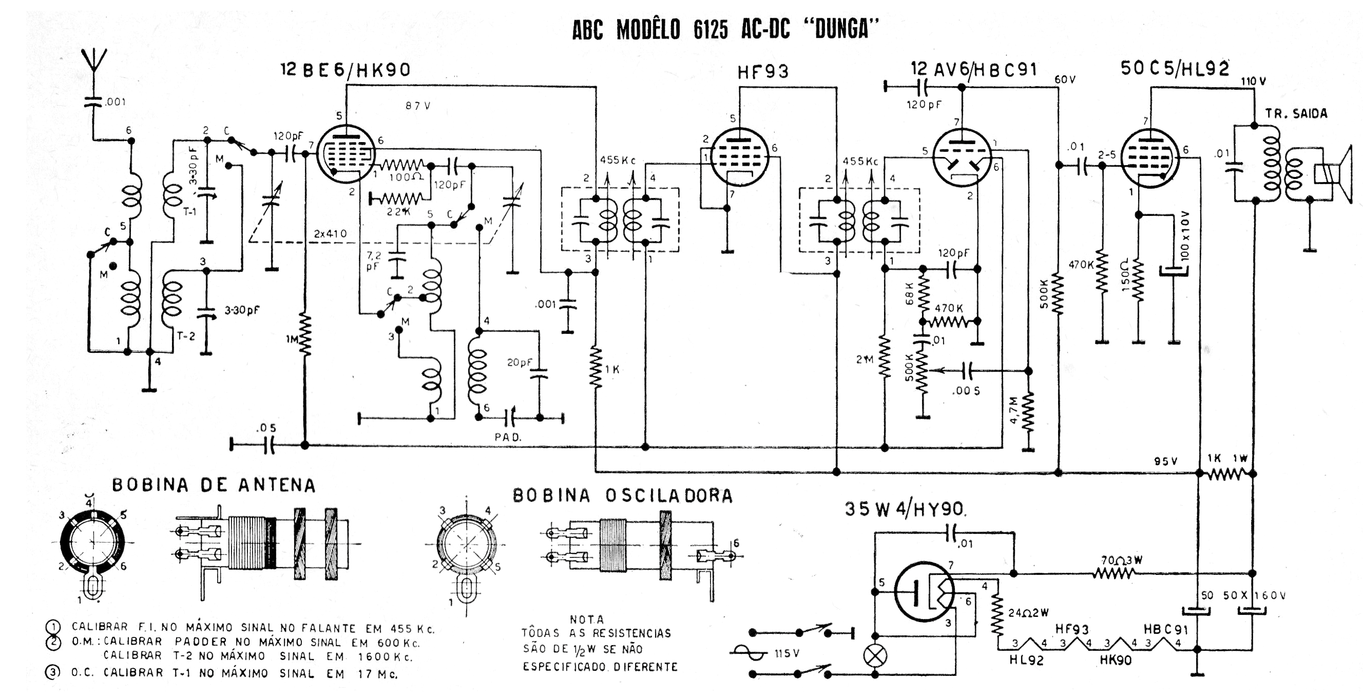 Este fue un radio extremadamente popular en los años 60 y 70 en Brasil, consistente en un receptor de ondas medias y cortas de 5 válvulas, tipo "cola caliente", con resistencia reductora de filamento en el propio cable. Con excelente sensibilidad el aparato fue vendido en gran cantidad, habiendo aún algunos con posibilidad de recuperación. Aquí va el esquema.