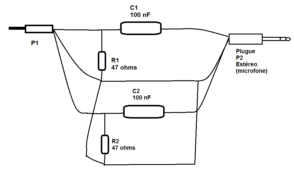 La posibilidad más sencilla es realizar el acoplamiento directo a la entrada del amplificador utilizando una resistencia de carga (para simular la presencia del teléfono) y un capacitor de acoplamiento, como se muestra en la Figura 4.