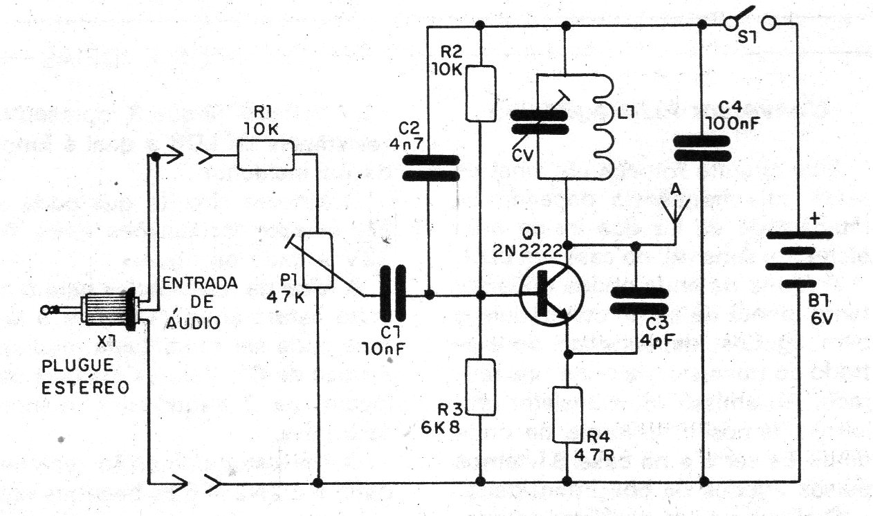 Luego damos el circuito de un transmisor para el sonido del celular.