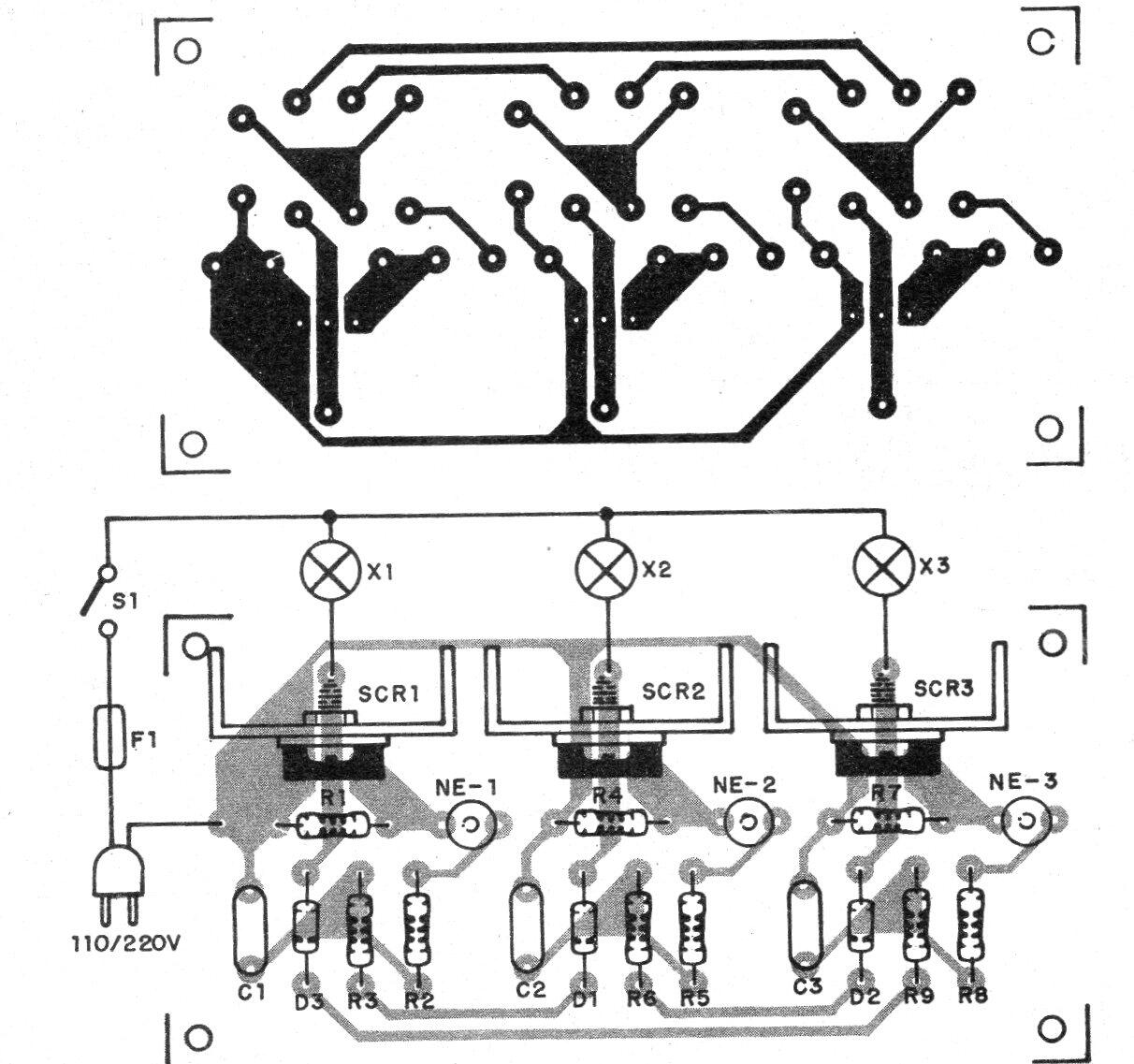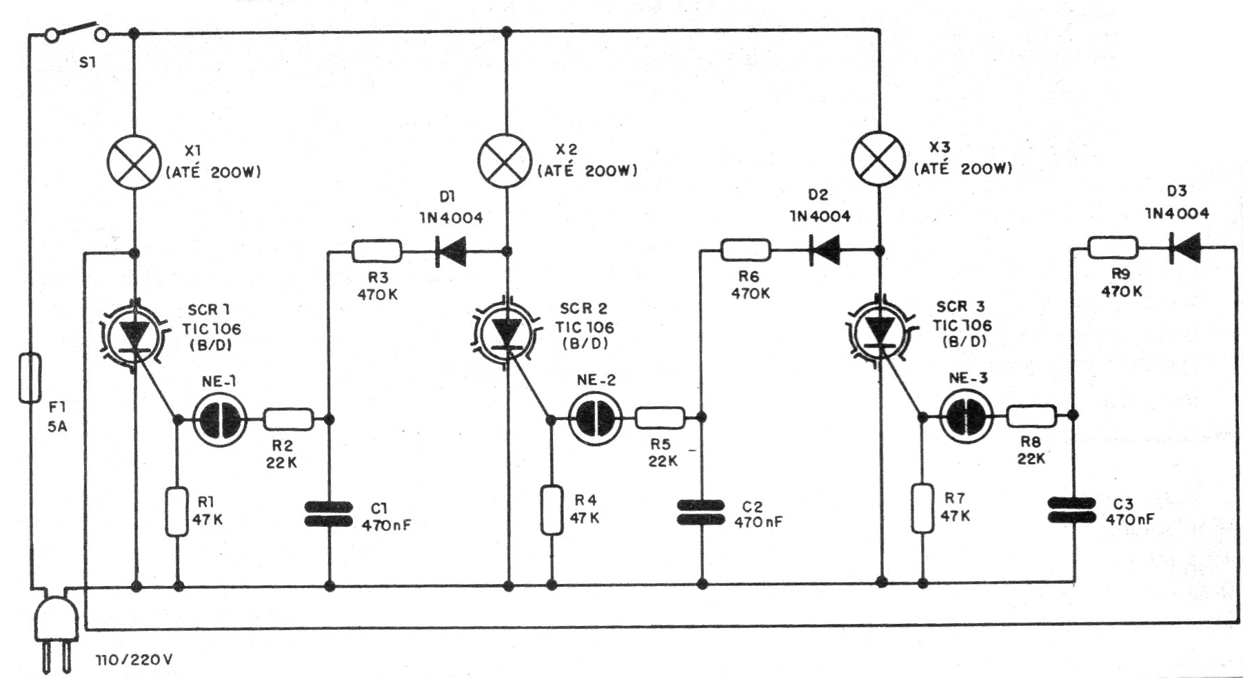 Estos SCR tienen como carga una o más lámparas que forman la secuencia de efectos.