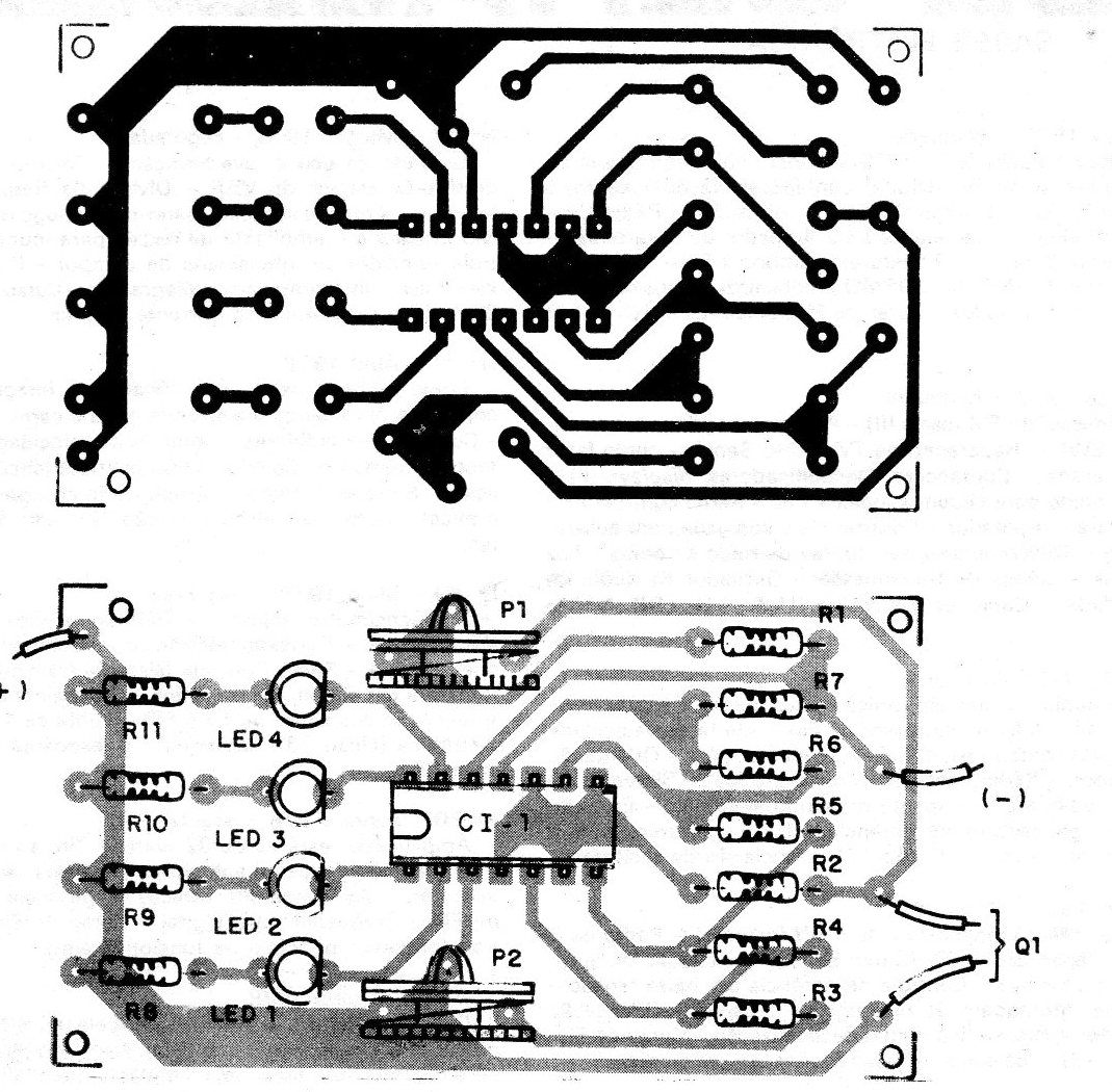 En la versión básica tenemos cuatro niveles de indicación, pero nada impide que, con el uso de dos integrados, podamos expandir la indicación a 8 niveles.