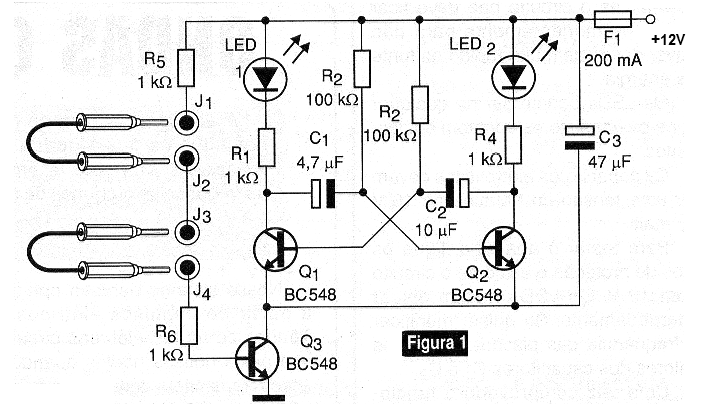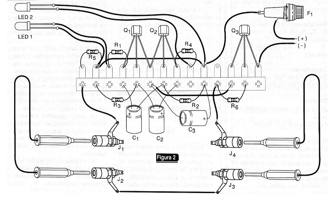 Para probar el aparato conecte los eslabones de protección y alimente el circuito con 12 V.