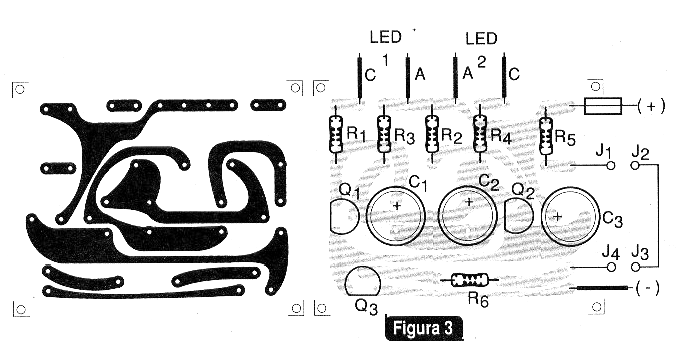 También es muy importante observar las posiciones de los transistores y las polaridades de los LED y los capacitores electrolíticos.