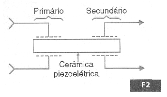 Cuando aplicamos en los electrodos que forman el primario una tensión alternada de frecuencia apropiada la cerámica se deforma produciendo ondas mecánicas que se propagan a través del material.