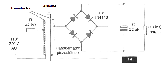 En la alimentación de dispositivos de baja tensión y muy bajo consumo a partir del alto voltaje de la red de energía el uso de un transformador piezoeléctrico puede ser una solución interesante en sustitución de las soluciones tradicionales como, por ejemplo, las que hacen uso de fuentes de transformador.