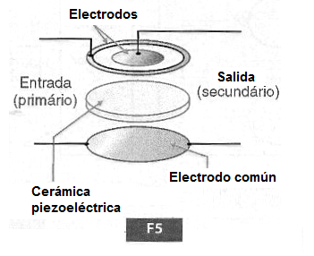 En otra parte de la misma cerámica tendremos el devanado secundario (virtual) que estará formado por dos electrodos colocados en el mismo material.