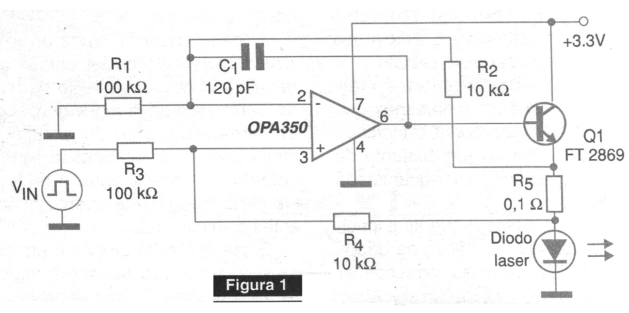 Burr-Brown, división de semiconductores de Texas Instruments, sugiere el circuito de la figura 1 para la excitación de los diodos láser. (2005)
