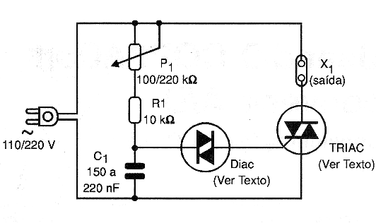 El circuito propuesto es la versión universal con TRIAC que la mayoría de los lectores conoce, pero no recuerda exactamente el diagrama, ni los valores de los componentes.