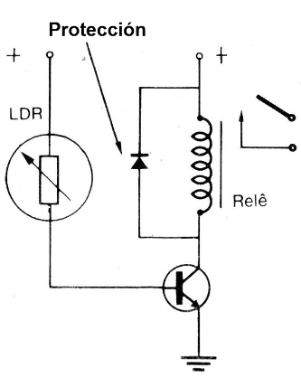 Este LDR se conecta a un transistor que, a su vez, controla un pequeño relé. (figura 2)