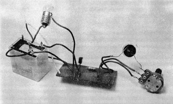 Con el disparo el relé cierra sus contactos conectando la lámpara de 6 V que entonces se encender.