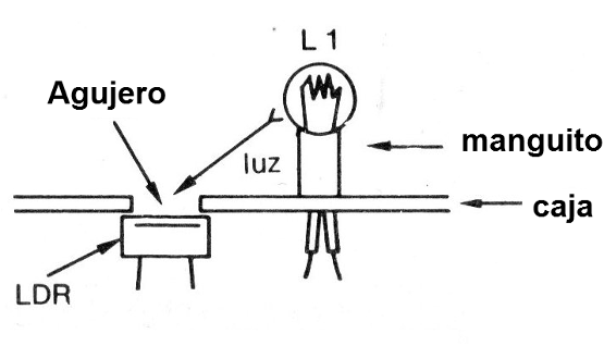 La posición del LDR debe también ser tal que haya dificultad para la incidencia de la luz ambiente.