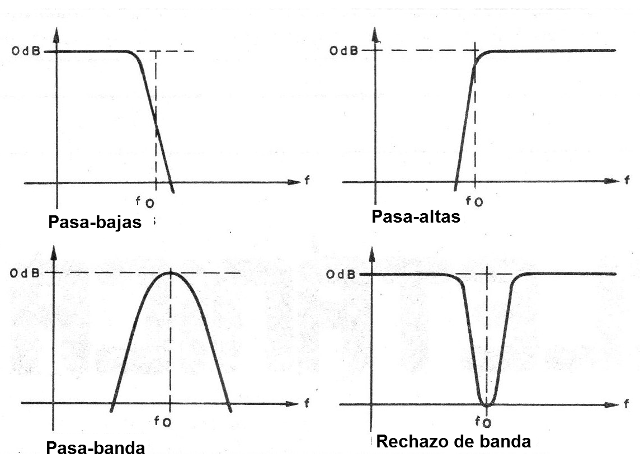 Tenemos entonces los siguientes tipos de filtros que pueden ser elaborados con la ayuda de amplificadores operacionals: