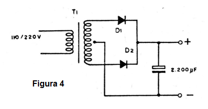 En la figura 4 tenemos entonces un circuito de fuente de alimentación usado en un radio portátil común que también puede ser alimentado por la toma.