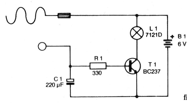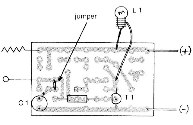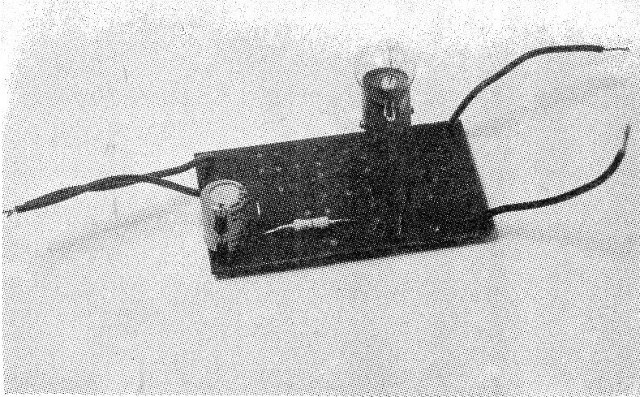 La lámpara utilizada es un tipo miniatura de 6 V que consume sólo 50 mA de corriente. Las lámparas más grandes no se deben utilizar, ya que además del consumo excesivo de corriente de las pilas, el transistor no aguanta, pudiendo quemarse.
