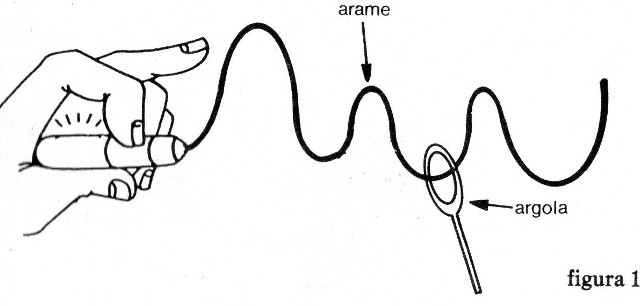 f) El alambre tortuoso y argolla se hace con trozos de alambre grueso rígido 14 o 16 como muestra la figura 5, y unidos al resto del aparato con trozos de hilo común.